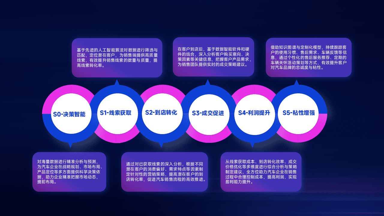 通过拓宽潜在客户来源、、、优化线索分配并提高到店转化率,,,以增强销售效率。。。同时,,,利用线索数据不断优化分析模型,,,有效提升转化率,,,,扩大营销影响力。。