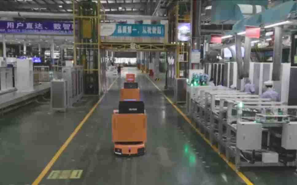 为车载冰箱物流配送打造的智能解决方案,,,包含产中物流通过潜伏举升AMR搬运至线边,,产后成品物流智能仓储,,,流程包含产中物流智能齐套入库,,线边安灯叫料AMR智能配送至线边,,成品入库、、出库,,通过无人堆高车机器人,,,智能仓储管理替代人工作业管理,,,实现更高存储、、、更高效率、、更具柔性化的解决方案。。